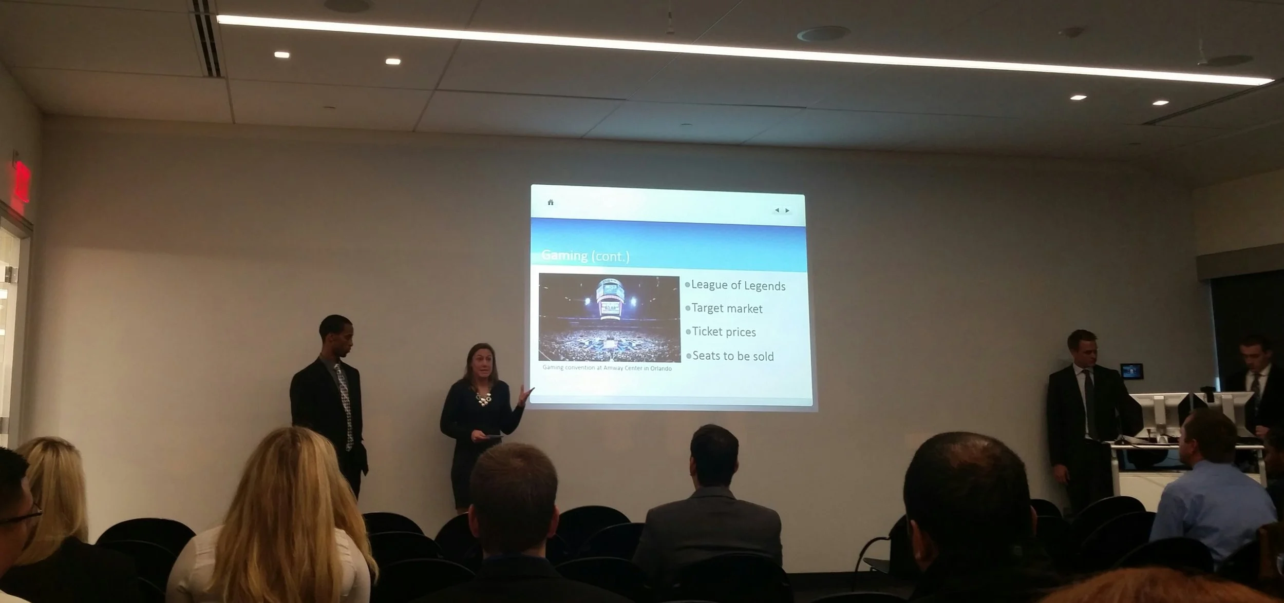 Students presented their initiatives to all the individuals involved, including representatives from Virginian Beach City Council and the local media on December 9. Amazingly, this was one day after the city council approved the development of the arena. Student groups focused on assessing bid requirements for potential events like the USA Gymnastics Junior Olympic Championships, X-Games, and US Figure Skating, which could be hosted at the arena and other facilities in the region. Collaborative and complimentary events between the arena and convention center were suggested, such as a skateboard competitions or a youth wrestling tournament at the convention center paired with a UFC event at the arena. One group focused on the popularity of e-gaming and the connection between these events and our regional demographics.